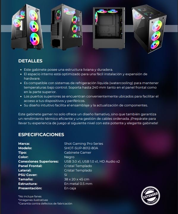 Gabinete Gamer Shot Gaming Pro Series SHOT-SUP-8012-80A | Cristal Templado
