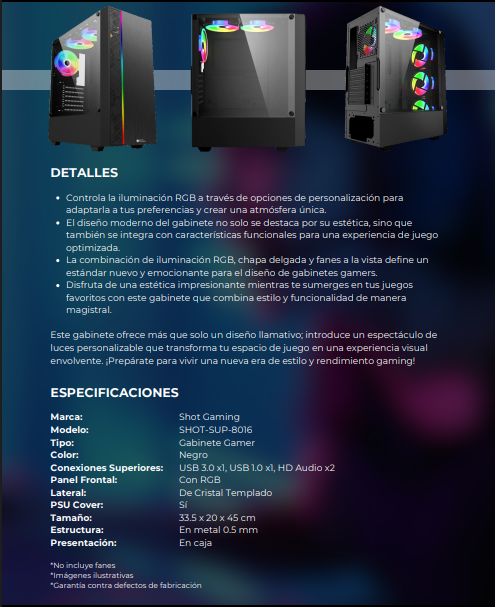 Gabinete Gamer SHOT-SUP-8016